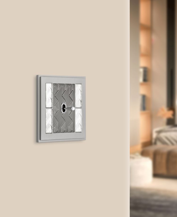 The intermingling of these two quality materials results in a harmonious balance between craftsmanship and contemporary style. With a selection of 29 solid brass finishes to choose from, Meljac enhances the gleaming light effects of the crystal. Each switch is an exquisite jewel adorning the wall. These creations are functional and lyrical, exuding the discreet, timeless luxury for which both Meljac and Lalique are renowned.
