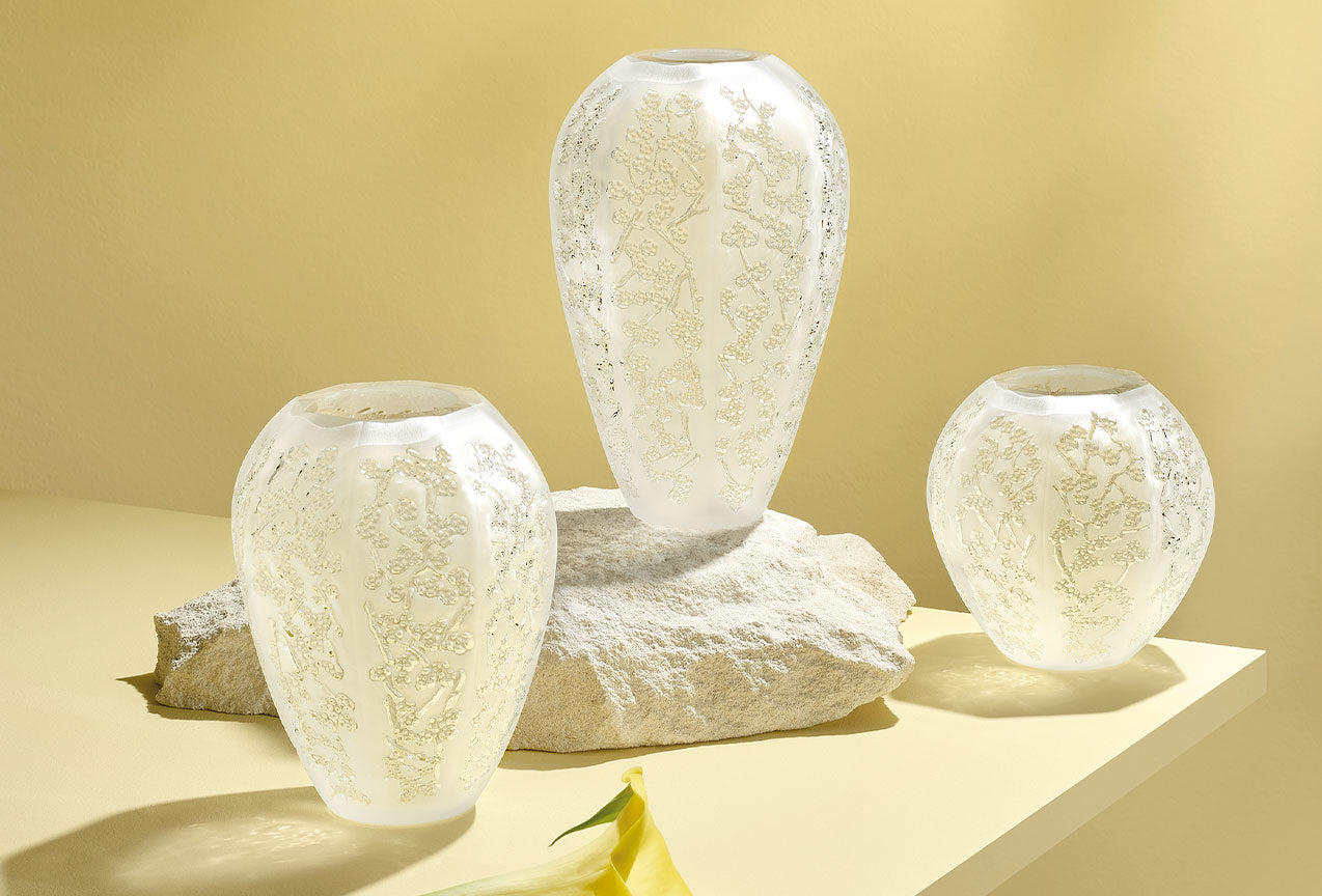This collection stands out with pieces featuring organic shapes and mineral tones, highlighting the exceptional craftsmanship of Lalique artisans.