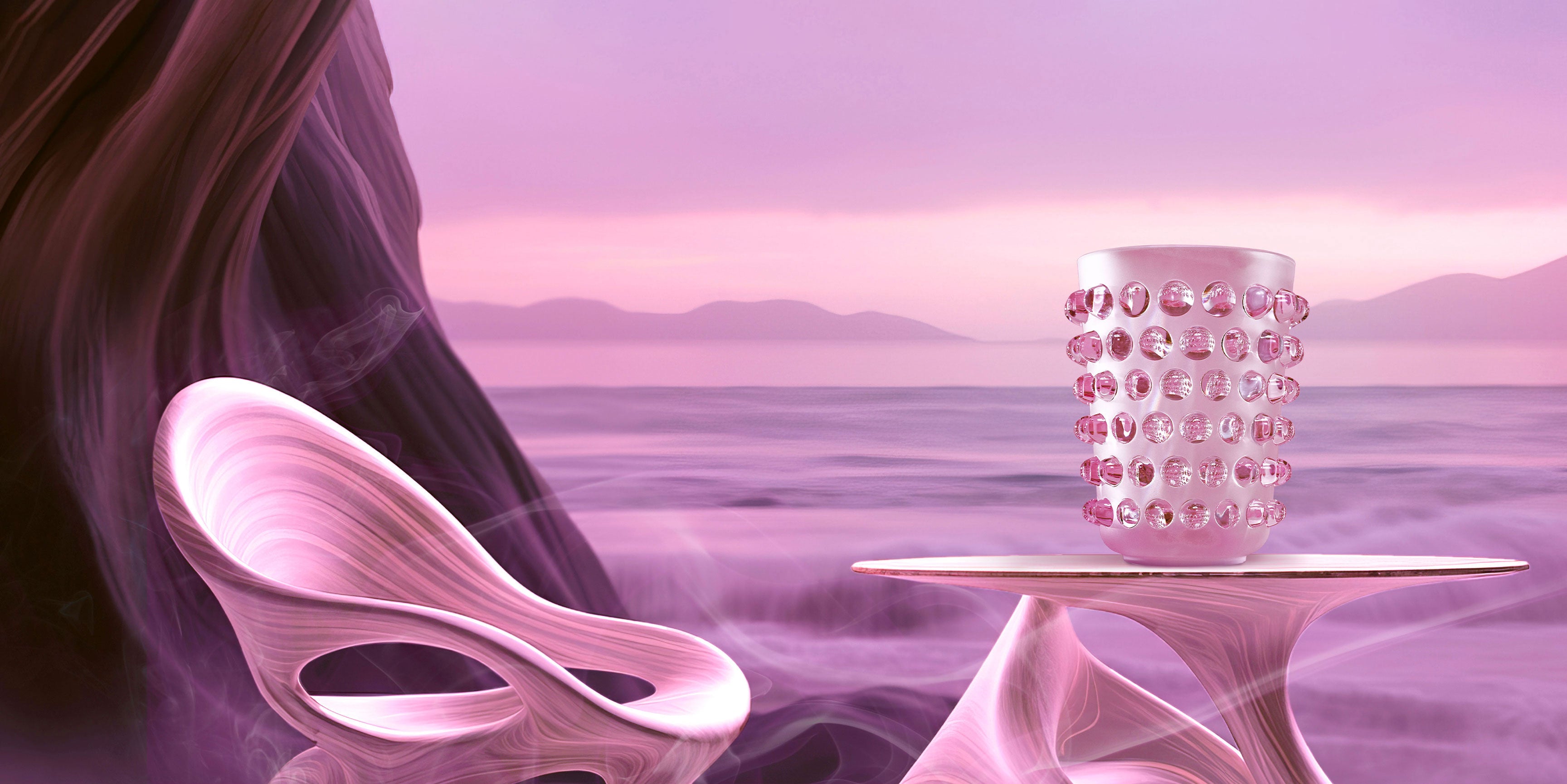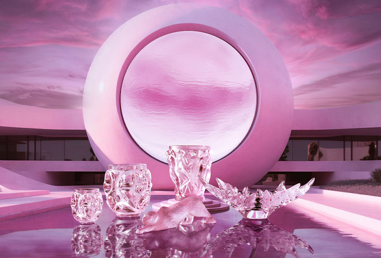 Lalique once again explores colour and reaffirms its audacity by lustering its crystal with a dreamlike multi-dimensional pink. The collection opens the doors to a new world of imagination, where the boundaries between the real and the virtual become blurred.