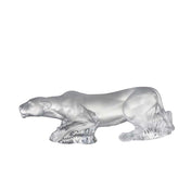 Muscles tense, gaze alert, senses sharp. The ready-to-pounce lioness sculpture focuses on its savage instincts in precious gold luster and clear dazzling crystal.