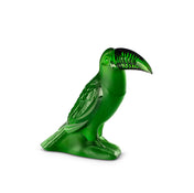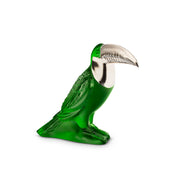 Curious and majestic, this exotic bird wears its dazzling green plumage with panache. The toucan's beak is even more imposing in the platinum stamped version for a very contemporary expression.