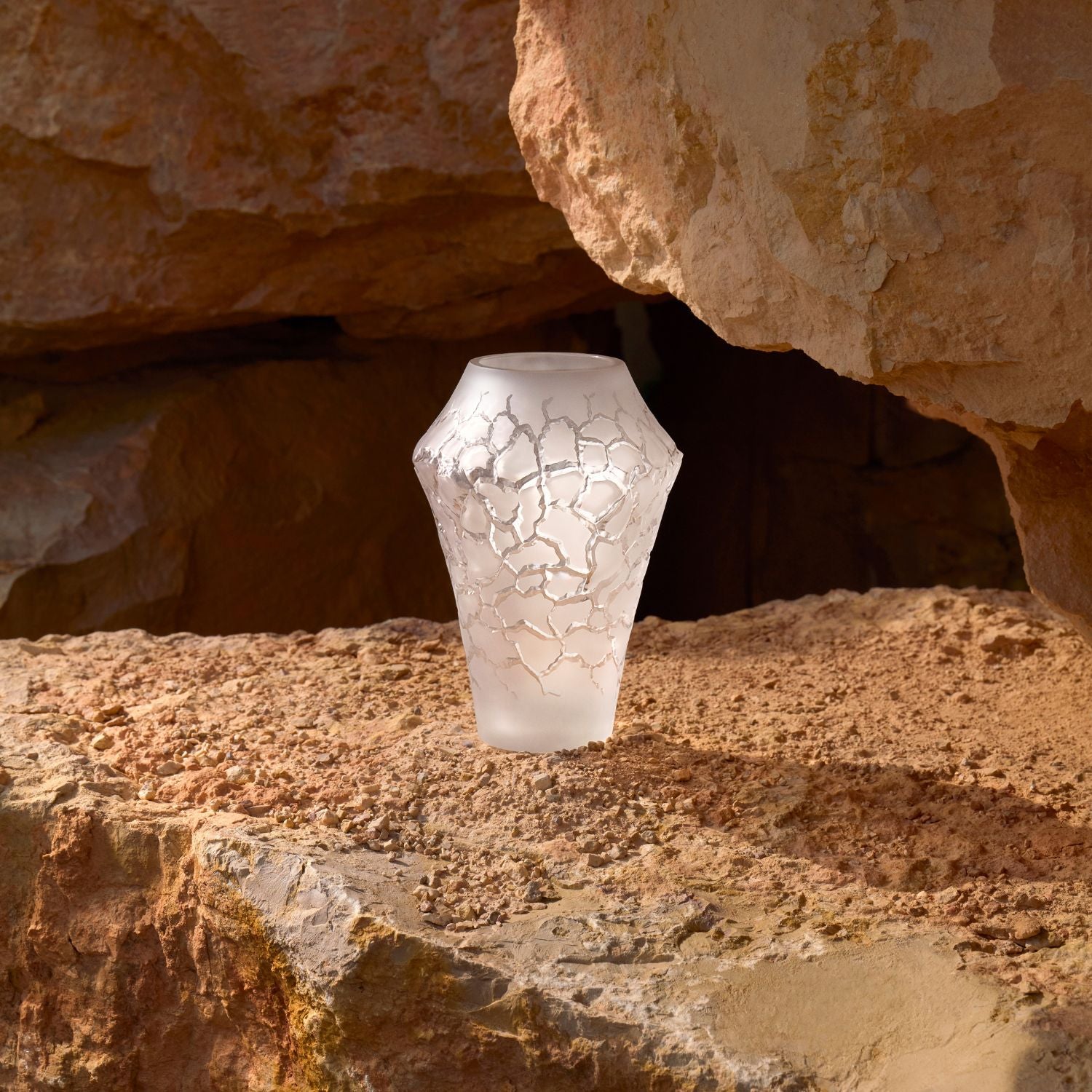 Lalique nous transporte dans un voyage explorant les remarquables décors de la surface, jusqu’aux profondeurs sculptées par les siècles. C’est avec poésie que l’énergie de la Terre est célébrée, par un oxymore de destruction-créatrice, entre force et délicatesse. La collection Terramineral se distingue par des pièces aux formes organiques et aux teintes minérales, mettant en lumière le savoir-faire exceptionnel des artisans de Lalique.