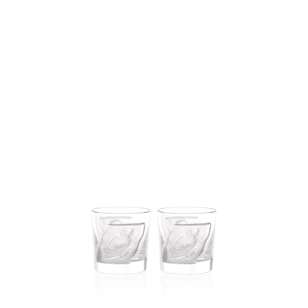 Oiseau mythique symbole de sagesse, la chouette Hulotte inspire à LALIQUE en 1994 deux gobelets aux lignes fortes et structurées. Une carafe très originale, au bouchon animalier, vient compléter cet ensemble en 1995.