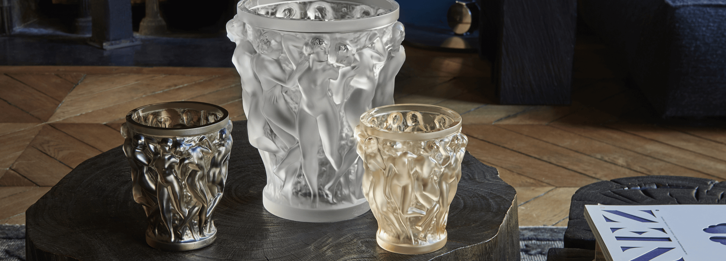 René Lalique's Bacchantes embody charm and gentleness. Ecstatic, they undulate, intertwined in the grace and sensuality emblematic of Lalique's artistic signature. Voluptuous curves, captivating beauty, the Bacchantes vase is a timeless piece of Lalique’s heritage.
