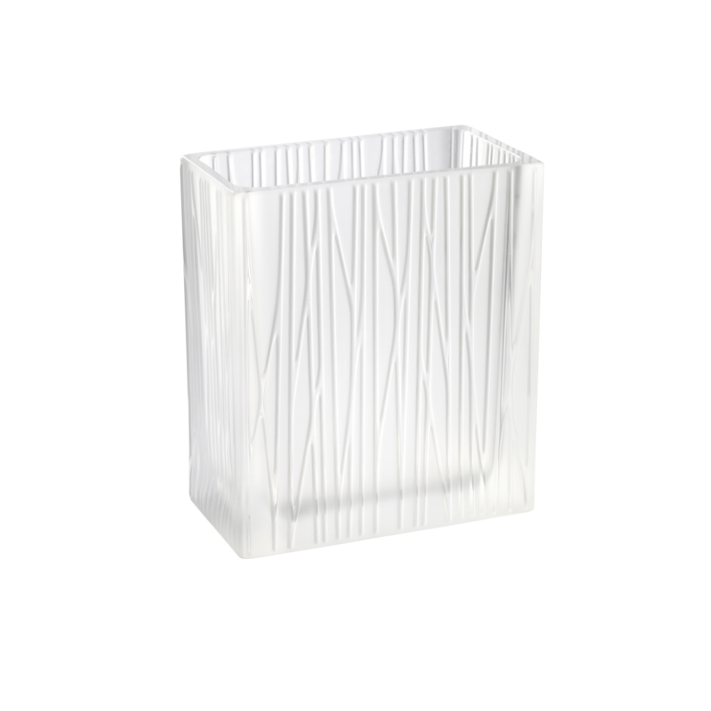 Rudy Ricciotti and Lalique present Edificio. Inspired by Rudy Ricciotti's latest building and crafted by Lalique, the Edificio vase stands as an ode to exceptional craftsmanship. Crystallizing the imagination of a concrete virtuoso, Edificio features a trapezoidal shape and a pattern of soaring vertical lines, reminiscent of the ribbed façade of the Parisian construction.