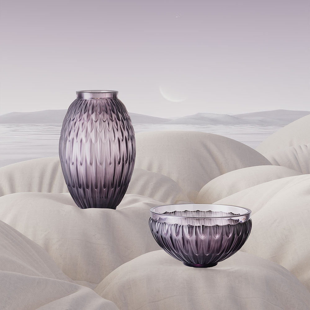 The Lalique Manufacture's experts have sought the perfect alchemy to create a unique color that reveals the brilliance of the crystal: the dusk purple. A bold new collection, available in limited quantities.