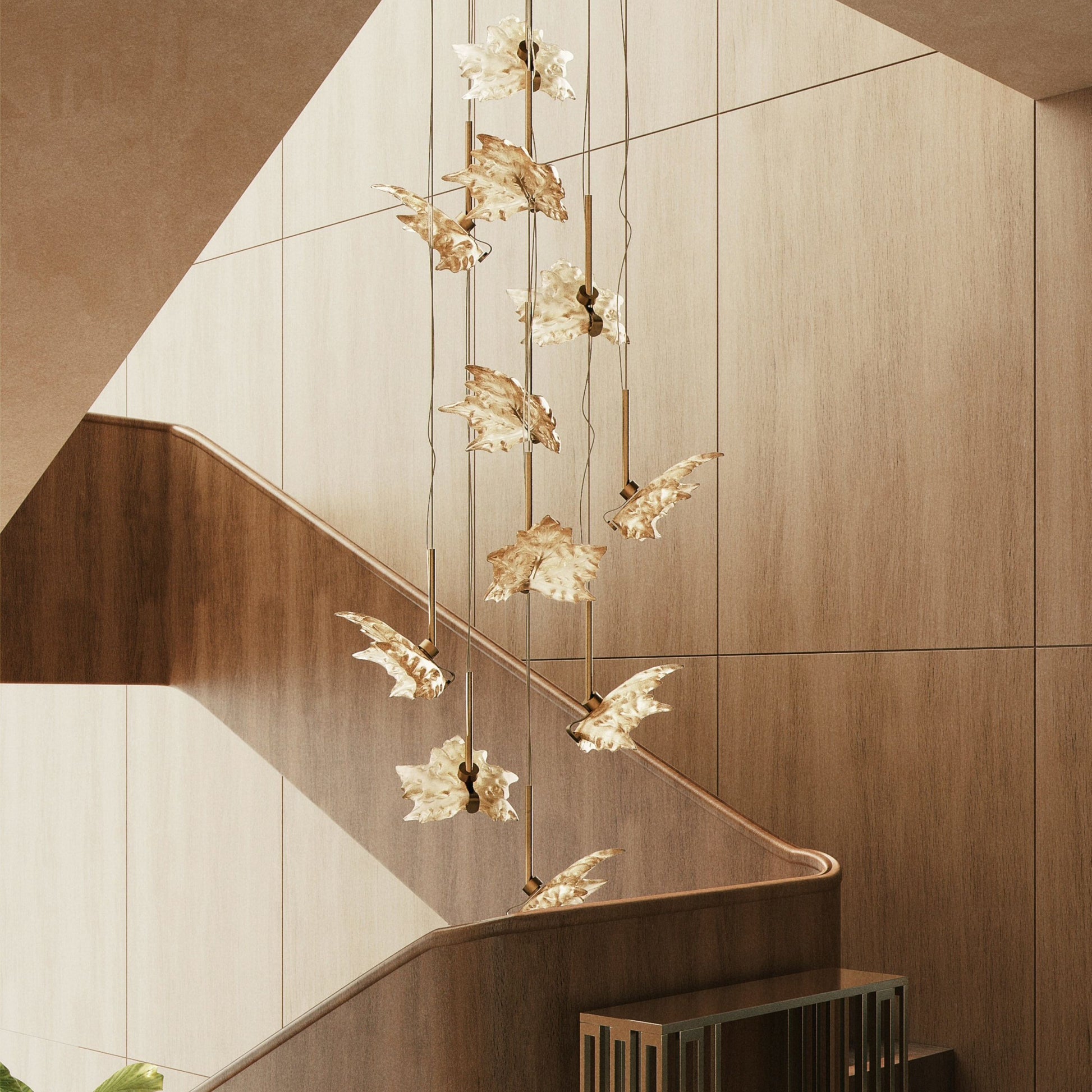 In 1951, Marc Lalique, the son of the House’s founder, walked down the Avenue des ChampsÉlysées. The majestic avenue of plane trees, with their leaves blowing in the wind, became engraved in his mind. The artist put down on paper this fragment of the soul of Paris, captured during his walk on the «most beautiful avenue in the world». Lalique Interior Design Studio pays tribute to this moment through a lighting creation that reflects Marc Lalique’s vision. A flight of crystal leaves seems to float in the air, time is stopped, the lighting reveals every detail and reflect of the crystal.