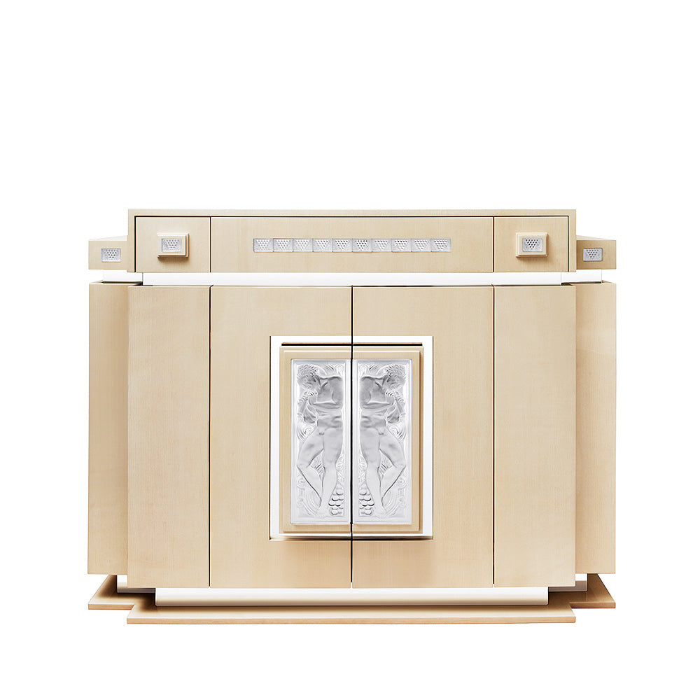 In 1928, René Lalique designed the Reed Piper panel to adorn the famous Venice Simplon Orient Express train. Highlighted by the glare of crystal, a male figure celebrates the worship of Bacchus among wine shoots and stylized bunches of grapes.