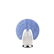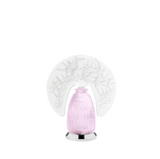 Reminiscent of René Lalique's famous tiara perfume bottles, the majestic tiara adorned with swallows is placed on the body of the lamp displaying a motif inspired by the Plumes bottle.
