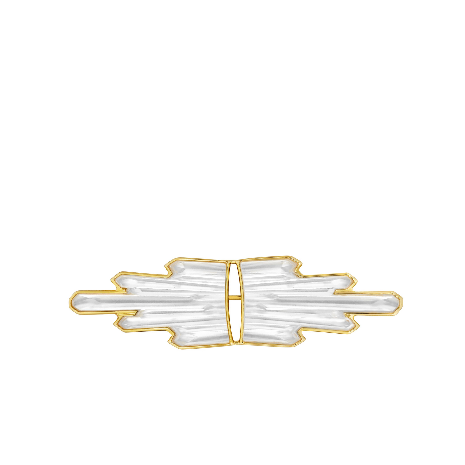 On this brooch, a duo of crystals face each other, creating a captivating play of light and reflections. Lalique drew inspiration from minerals shaped by centuries to recreate their natural beauty in the Terramineral collection. A manufacturing feat, the fine metal frame perfectly embraces the delicately chiseled contours of the crystal, revealing its detailed reliefs.