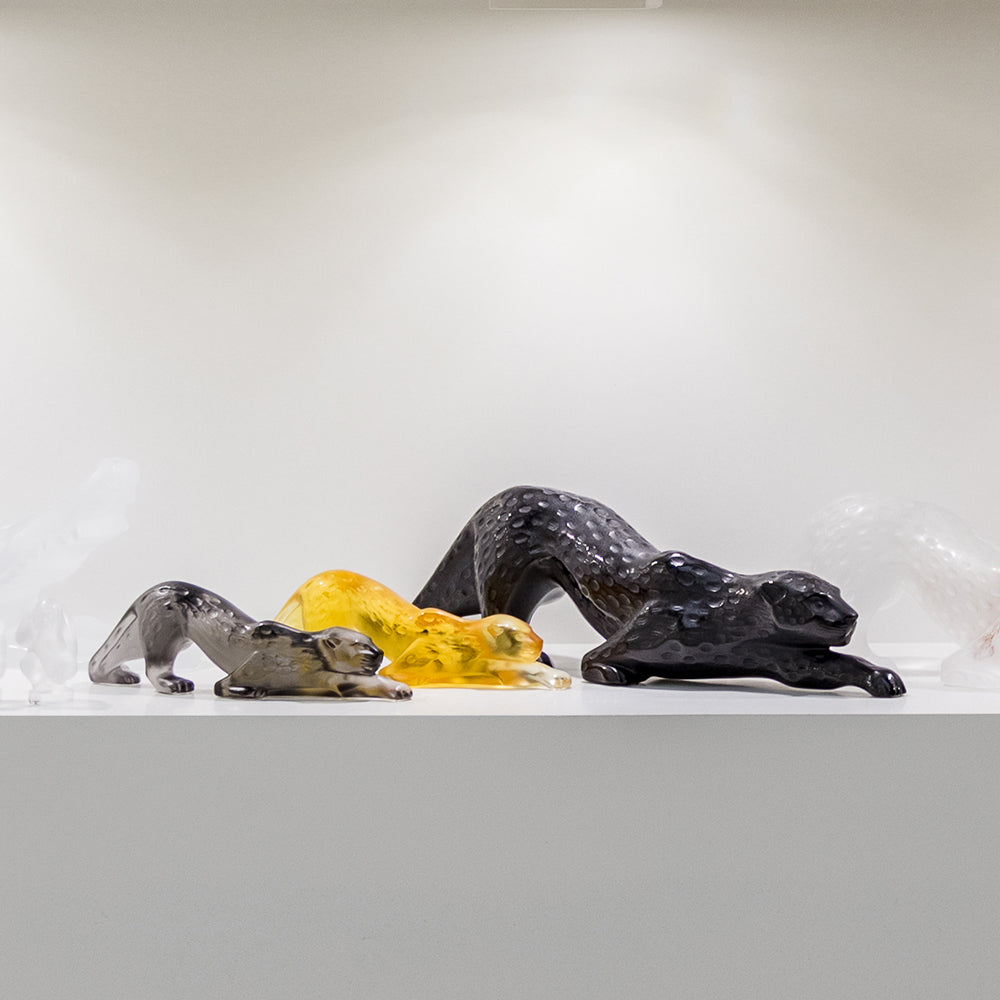 Nimble and sensual, she approaches stealthily, preparing for her attack. Her slim silhouette is enhanced by powerful muscles covered with crystal fur sculpted by thousands of luminous spots. Designed by Marie-Claude Lalique, the Zeila Panther embodies the feline strength and grace.